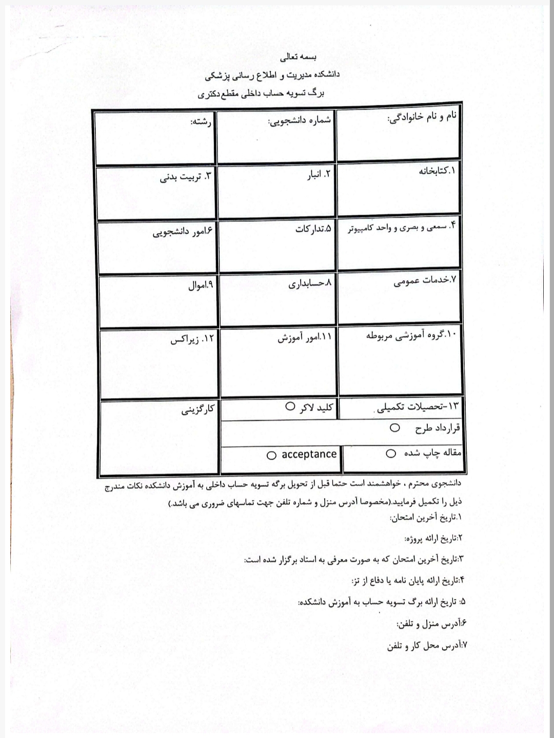 فرم درخواست دفاع از پایان نامه دانشجویان تحصیلات تکمیلی شماره 1و2