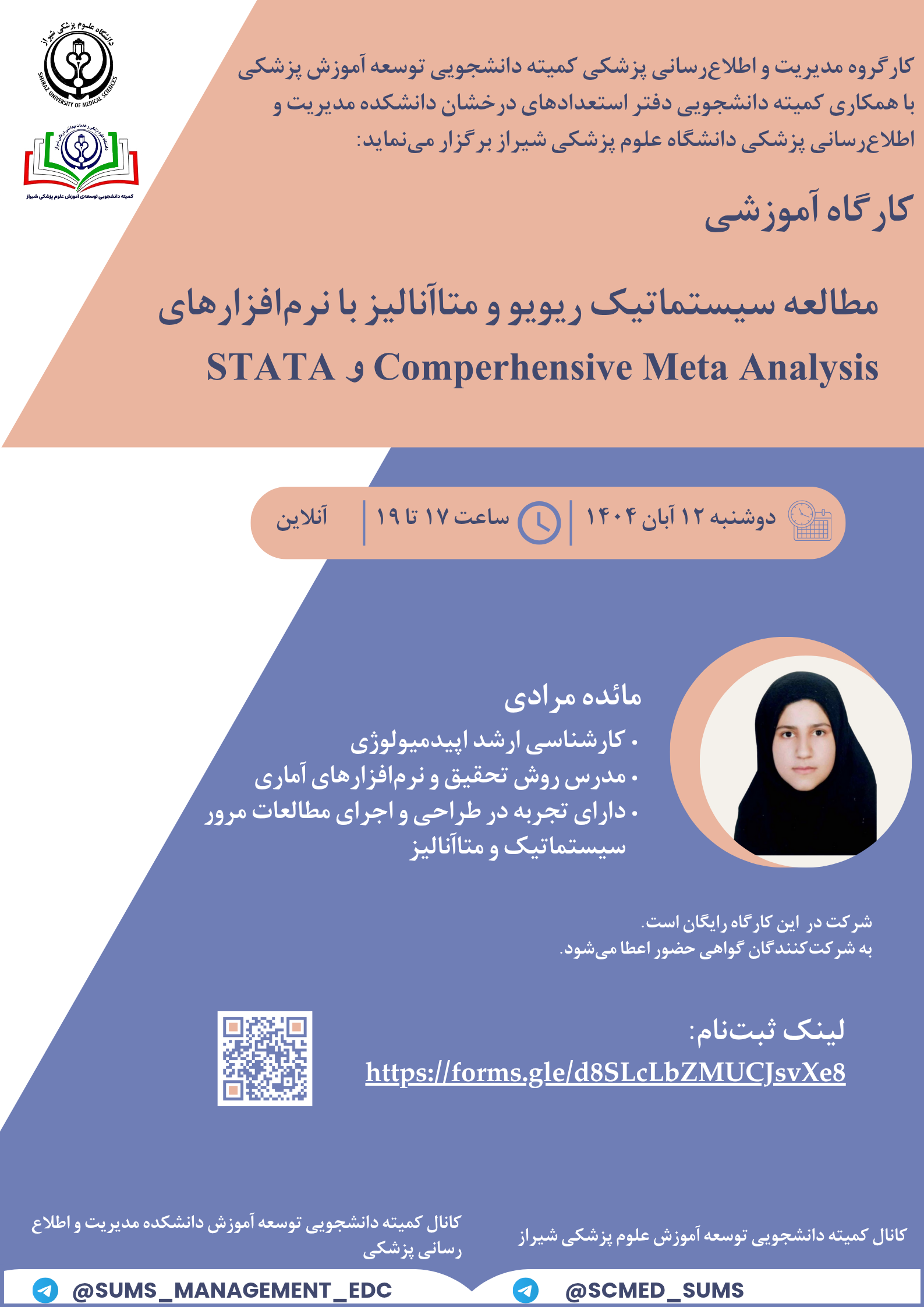 کارگاه آموزشی مطالعه سیستماتیک ریویو و متاآنالیز با نرم افزار stata , comprebensive meta analysis
