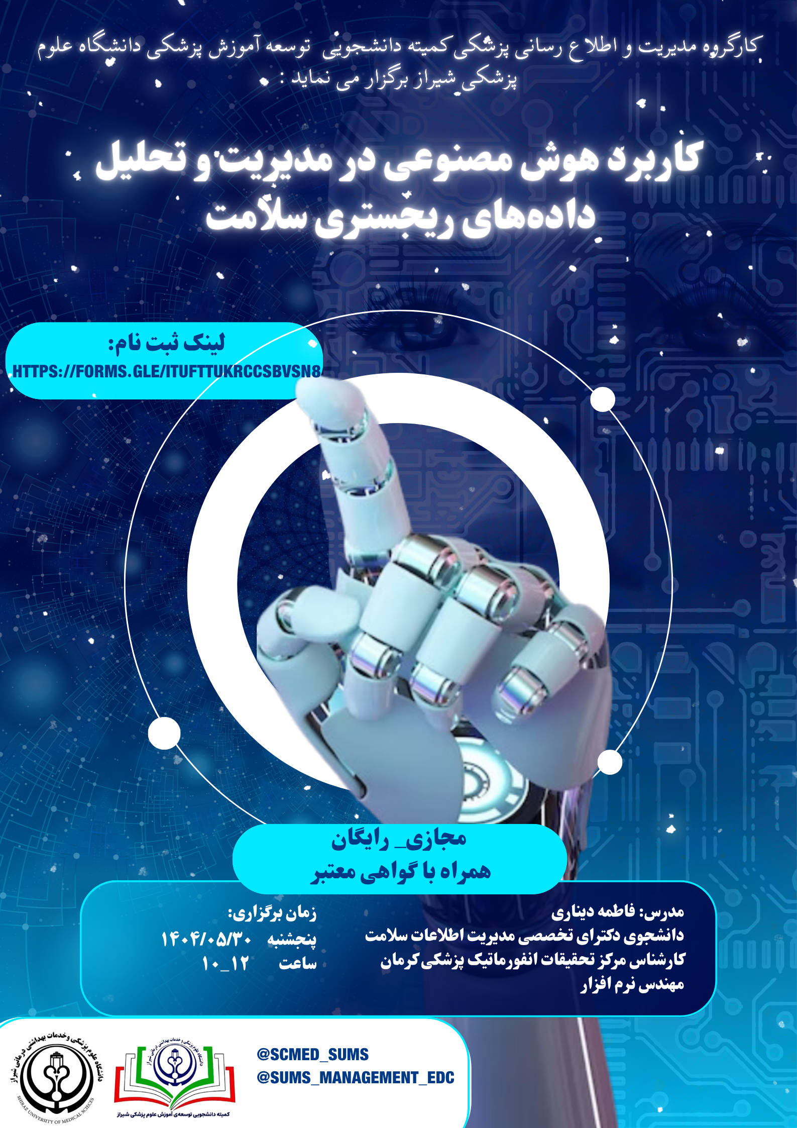 کارگاه کاربرد هوش مصنوعی در مدیریت و تحلیل داده های ریجستری سلامت