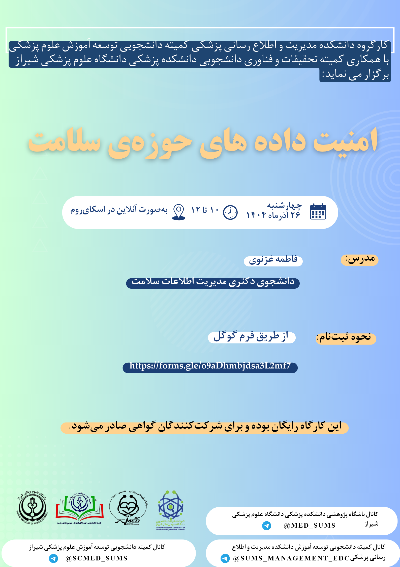 فراخوان ها و کارگاه های کمیته و توسعه آموزش دانشکده مدیریت و اطلاع رسانی پزشکی